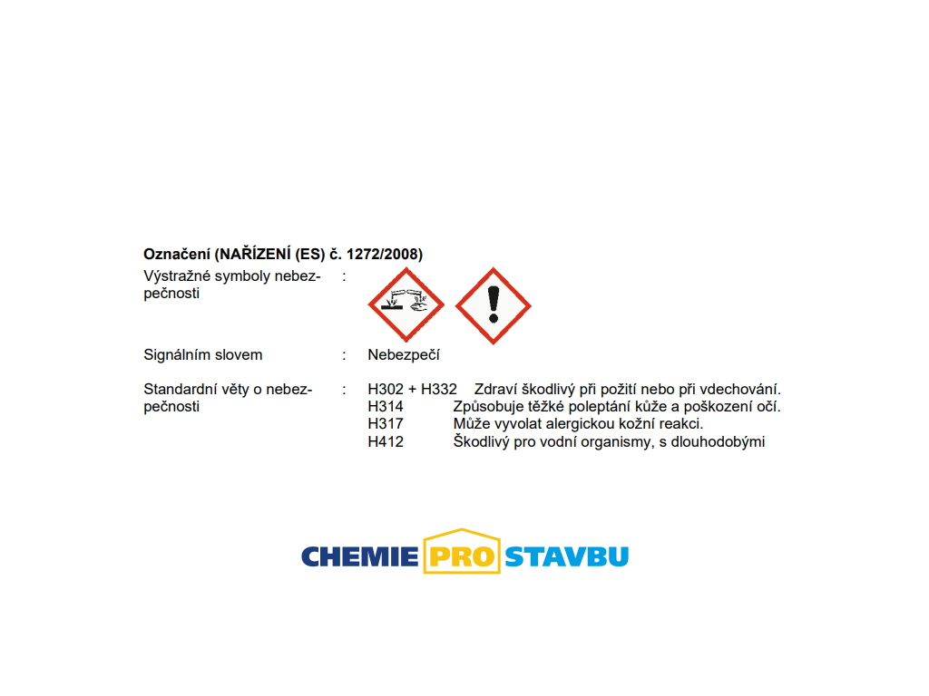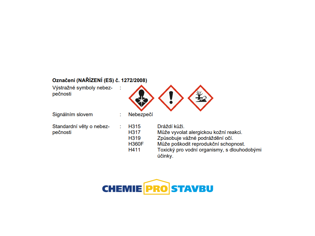 ! Produkt obsahuje nebezpečné látky a je klasifikován a označen podle nařízení CLP.
