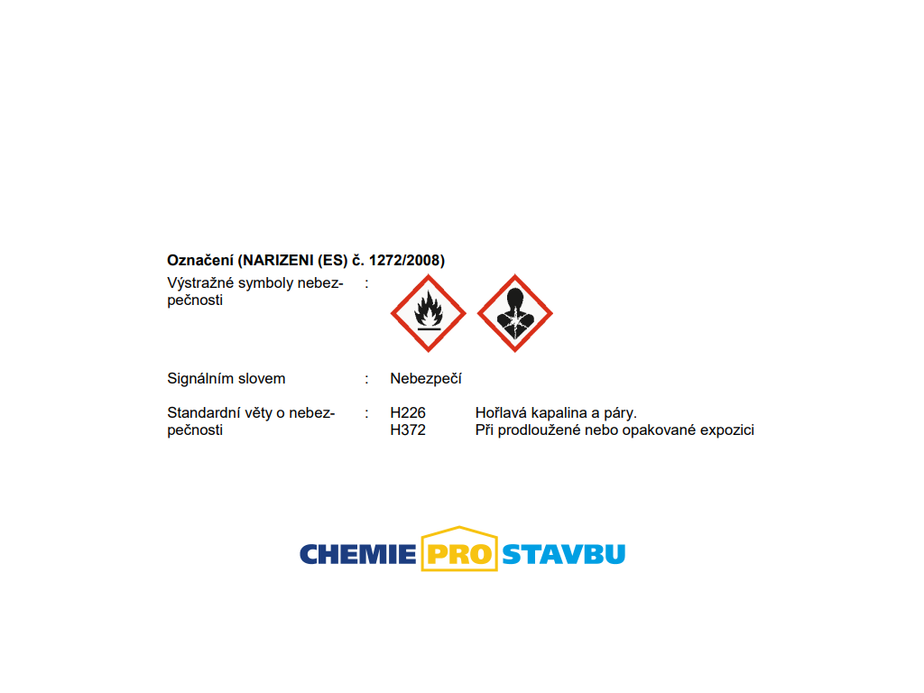 Produkt obsahuje nebezpečné látky a je klasifikován a označen podle nařízení CLP. Při nesprávném použití může představovat zdravotní a bezpečnostní riziko. Před použitím si prosím pečlivě přečtěte bezpečnostní list v záložce technické dokumenty.